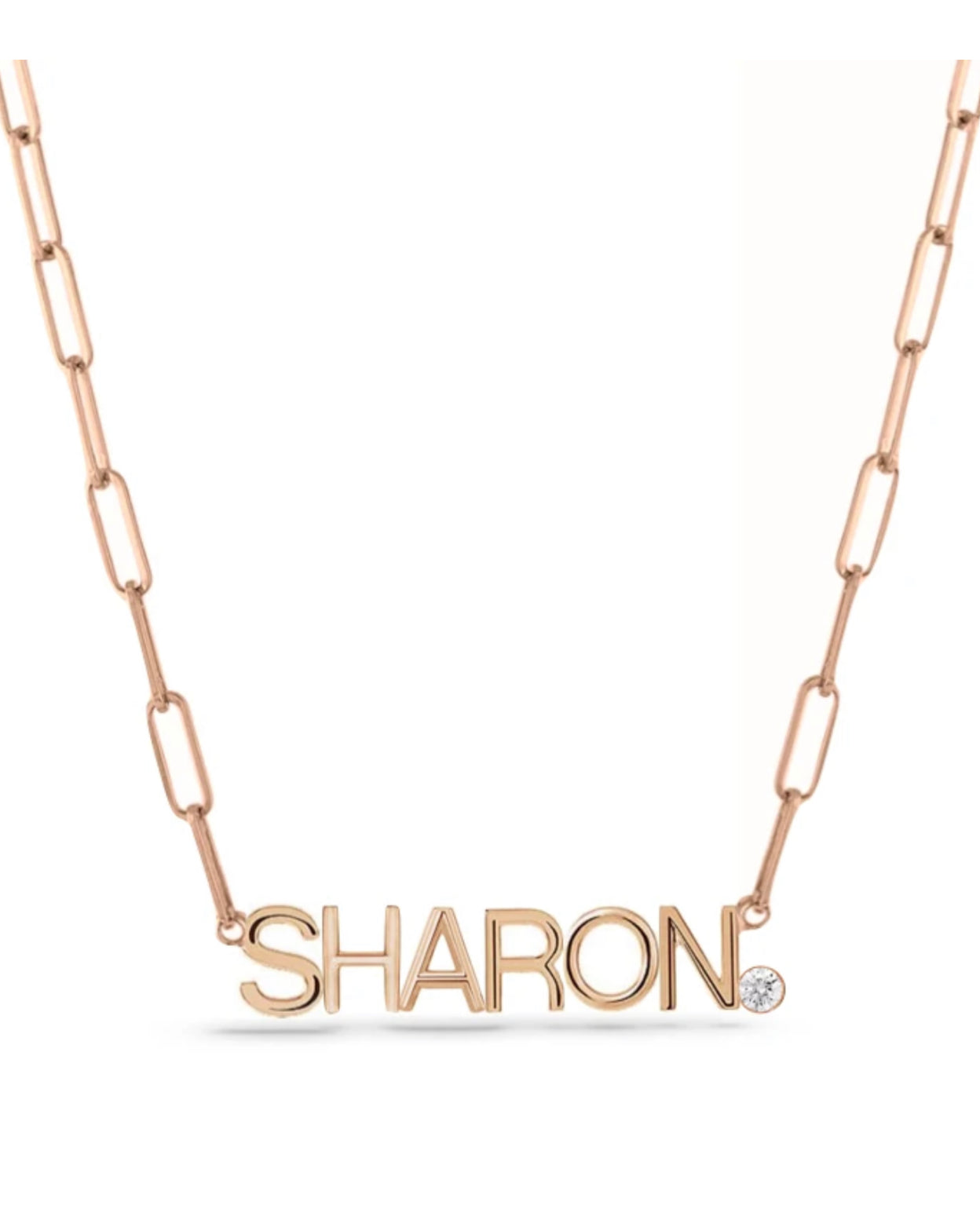 Our 14K Gold Name Necklace is the perfect piece for every situation, every day of the week. Wear your name, your loved one’s name, or a short word that compels you toward your personal best. We love this necklace all by itself, paired with a choker, or layered with a couple of other necklaces in longer and shorter lengths.