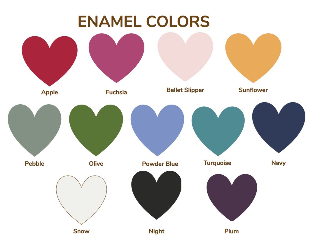 Our new heart-shape mantra pendants are a hit! These beauties let you showcase your mantra with a splash of extra color by adding enamel. Are you a Hot Mama in hot pink or are you looking to give that perfect gift to your love in their favorite color? Whatever you choose you’re sure to draw attention by wearing your mantra in these darling, colorful hearts!