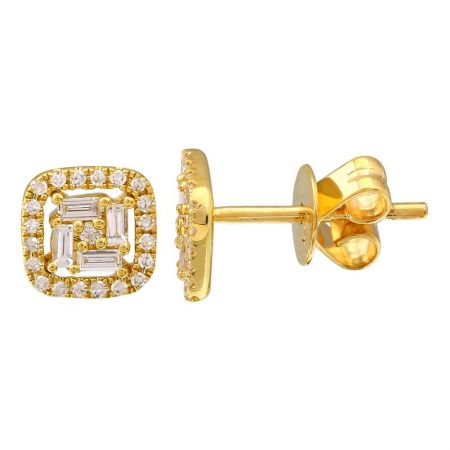 Simple and stylish, this pair of studs can enhance any look. Crafted in 14K Yellow Gold, these earrings feature a square halo design that glistens with 0.20 ct of diamonds.