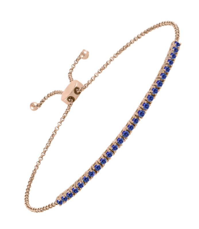 The perfect everyday tennis bracelet with 26 round-cut blue sapphires set in brilliant white gold. These dainty darlings will dance and play gracefully on your wrist and the bolo closure makes for a perfect fit and easy on-and-off.