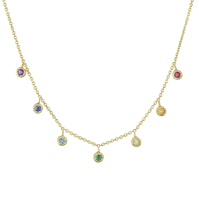 Light up the night or bring a splash of color to your day. Seven rainbow gemstones bring out the color in your eyes and complement your other jewelry.