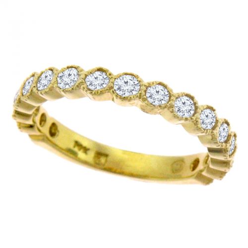 Vintage-inspired round diamond half eternity band. This band is used as a wedding band, anniversary band, or can be added to a ring stack.