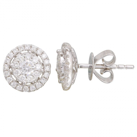 Bold and beautiful, these diamond stud earrings are surrounded by a shimmering halo of round diamonds framed in 18k white gold.